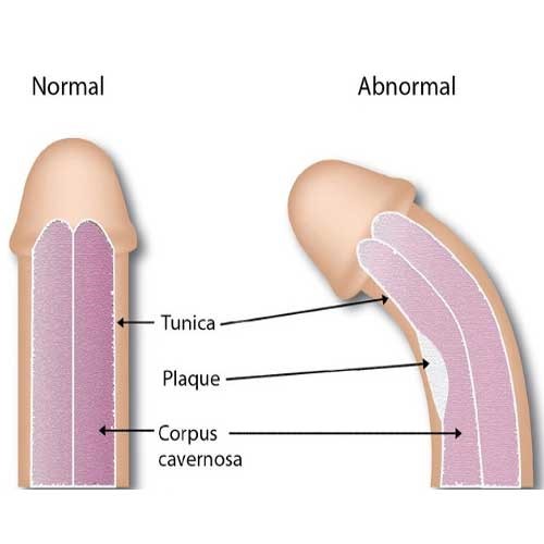 Peyronie hastalığı, tunika albuginea adı verilen, kavernöz dokuyu çevreleyen sert bağ dokusu tabakasında fibrozis ve plak oluşumu ile karakterizedir. Bu plak esnek değildir ve ereksiyon sırasında penis dokusunun bir tarafının normal genişlemesini engeller. Bu da penisin: